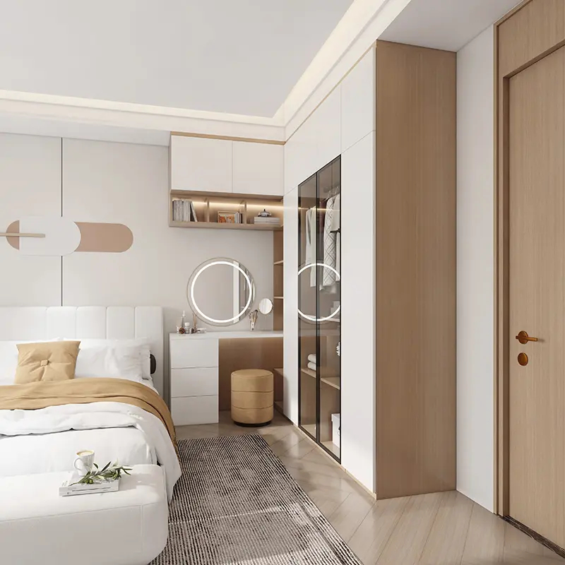 Elements and gentle healing cream color make the simple space, hiding peace and poetry; Curved surface arc elements, subversion