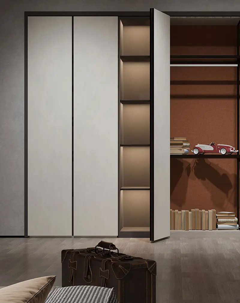 嵌入式一体式把手结合金属元素,勾勒出门板轮廓,营造出一种仪式感。