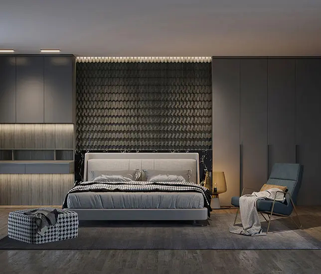 体现了极简主义的设计哲学,以简洁的线条、精致的细节和天然的染色为特色,打造出独特清新的造型,诠释了舒适的生活品味。门板设计采用现代极简主义风格,嵌入式一体式把手结合金属元素,勾勒出具有仪式感的门板轮廓,通过对细节的关注提升了空间的整体品质,契合了现代简约精致的生活方式。