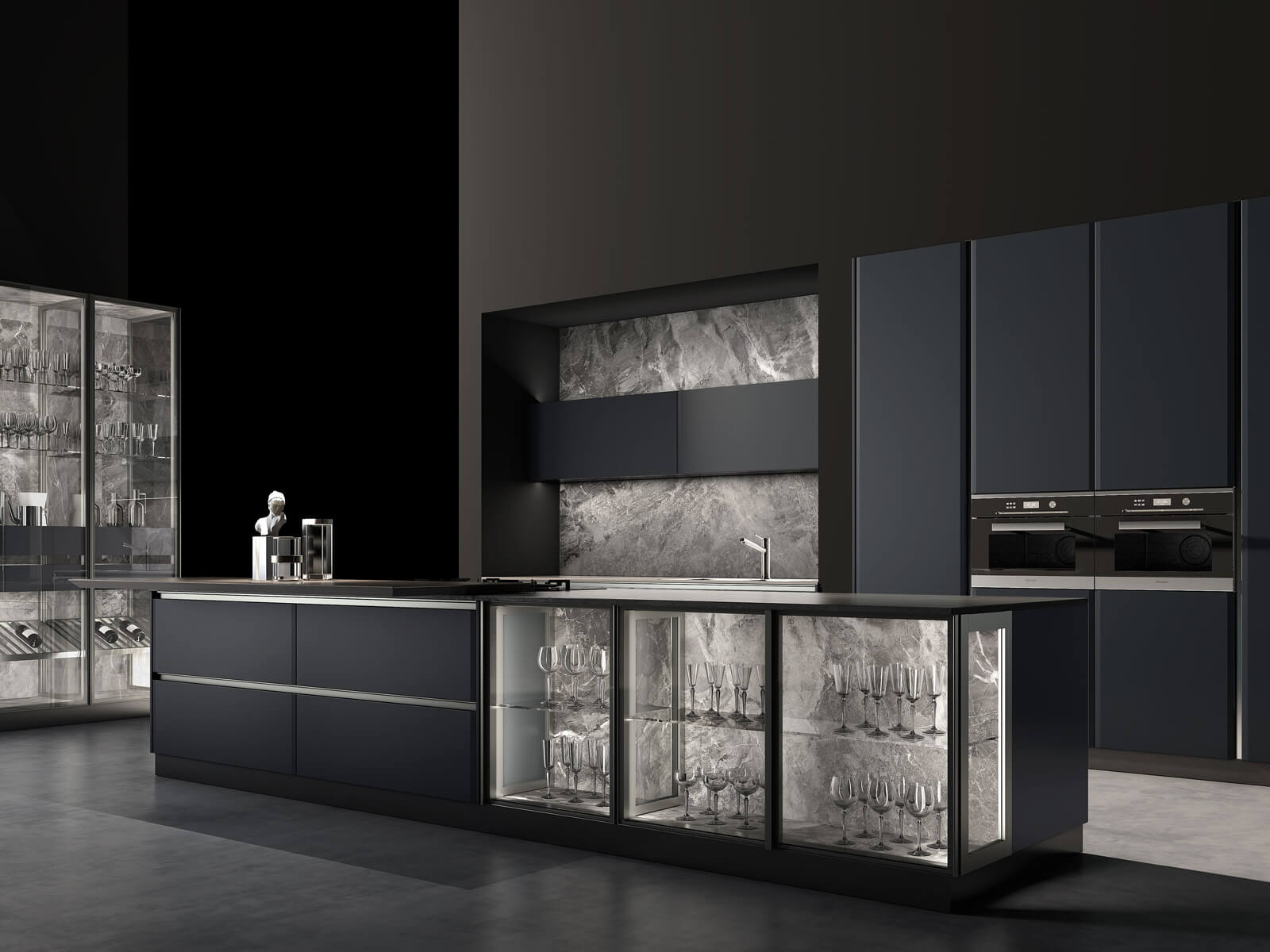 Modern Kitchen Cabinets with Glass Display System – Fantasy Series